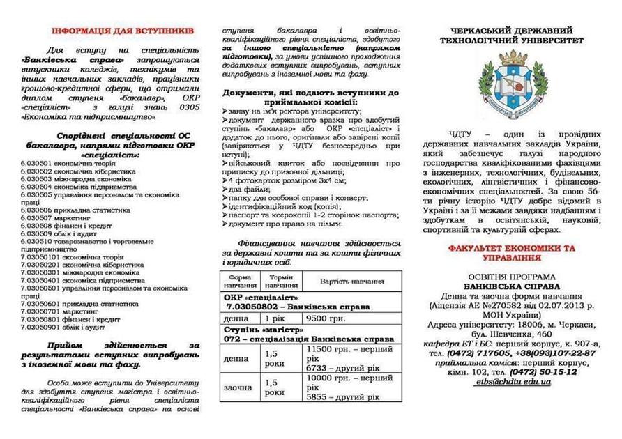 - Подать документы на специальность "банковское дело" в ЧГТУ