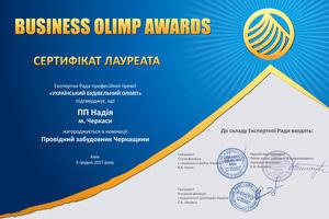 В грудні 2017 року ПП "Надію" визначили лауреатом премії в номінації "Провідний забудовник Черкащини" за масштабне будівництво в своєму регіоні, використання екологічно безпечних матеріалів, створення власного парку будівельної техніки (Український Будівельний Олімп).