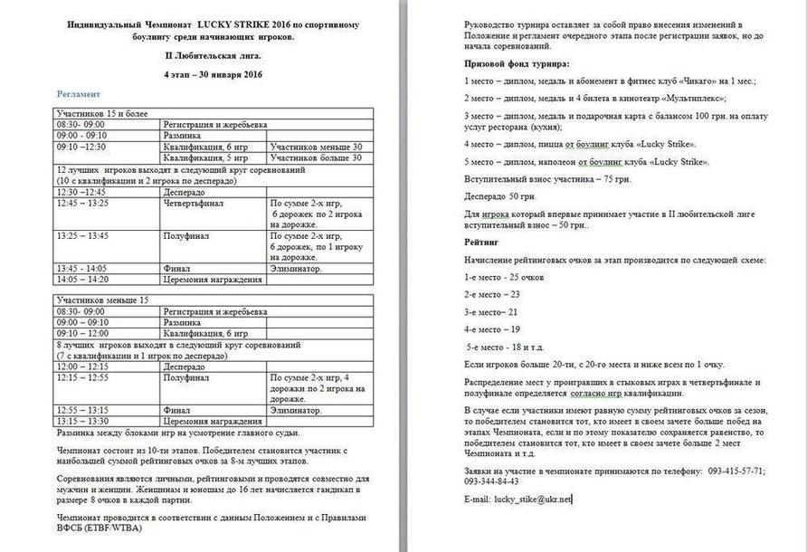 - Організатор: LUCKY STRIKE, боулінг-клуб