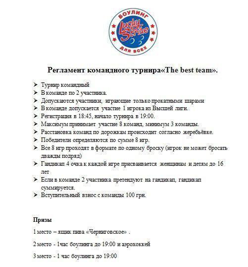 Командний турнір "The Best Team" в "Lucky Strike"