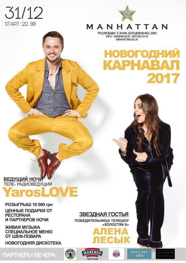 Головні Подарунки від Альони Лесик, ресторану-клубу Manhattan і наших партнерів будуть розіграні серед гостей, які зустрінуть Новий 2017-й Рік разом з нами в клубі Manhattan!